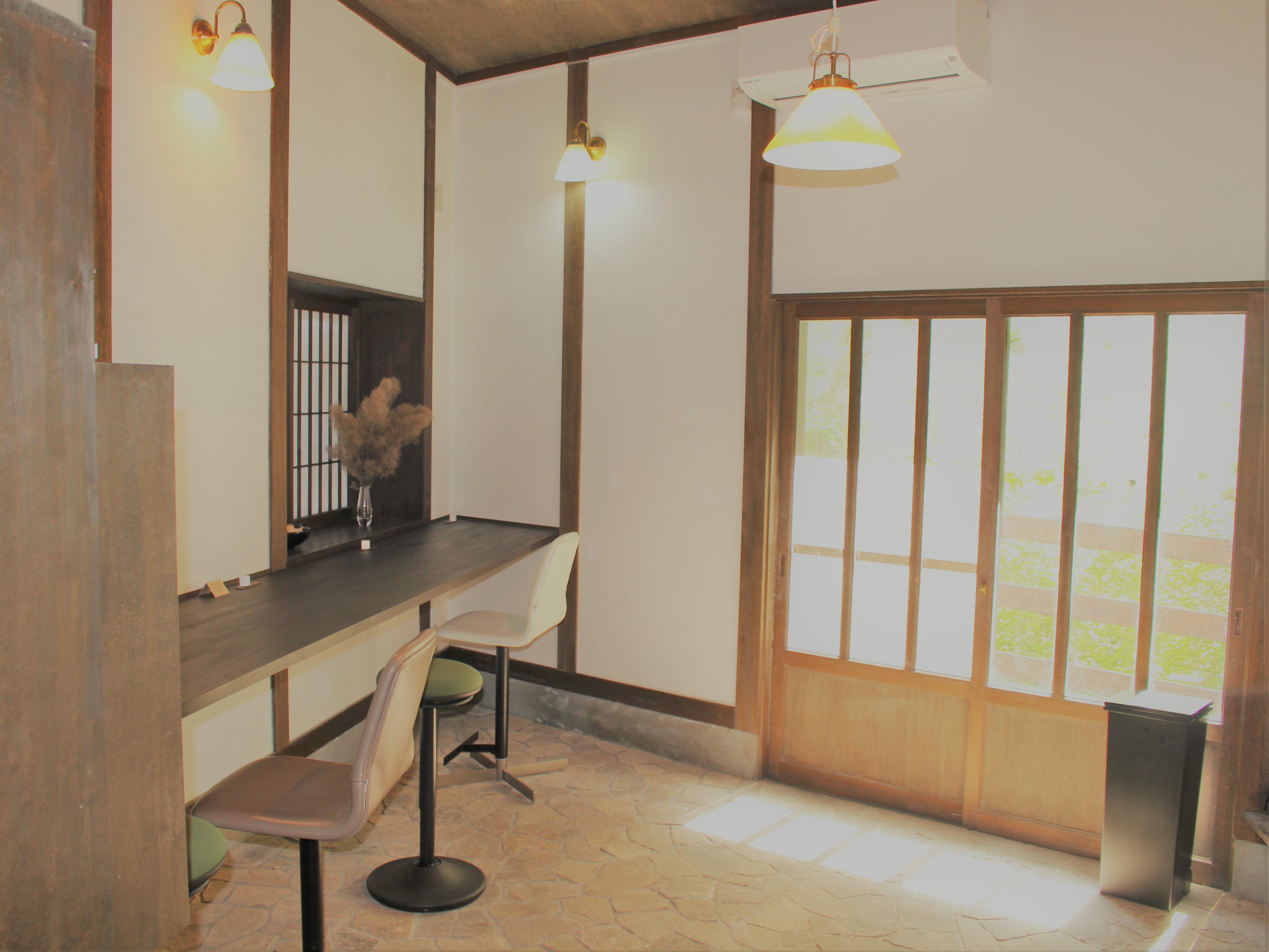 土間のカウンターでも、座敷、和室でも、どこでも自由に使え、オーナーの選んだこだわりのFree Drinkもあります。コワーキングスペースとして必要な電源、Wifiも十分あります。結構暑い日でしたが、エアコンを付ければ十分快適に過ごせます。